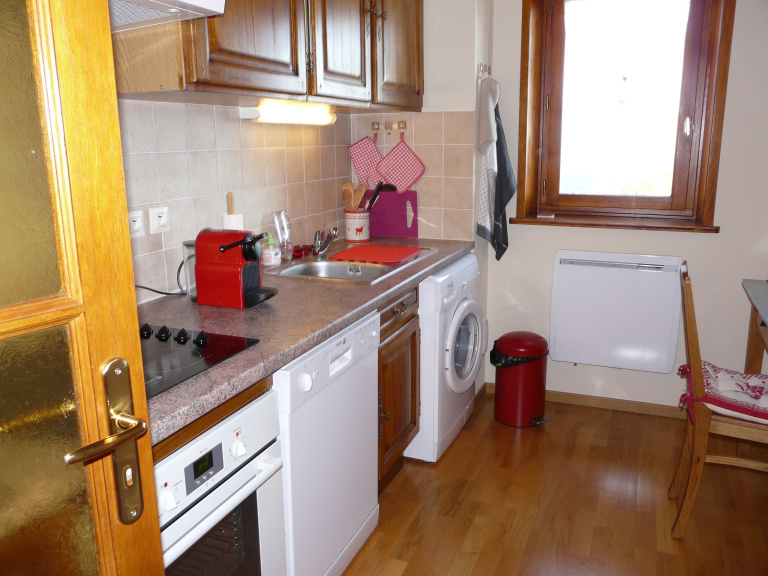 Vendu meublé et équipé, il comprenait : hall d’entrée, cuisine indépendante, salon-séjour avec poêle à bois et accès balcon, deux chambres, salle de bains, WC indépendant, casier à skis, cave commune, garage individuel fermé, parking extérieur, barbecue commun, aire de jeux.