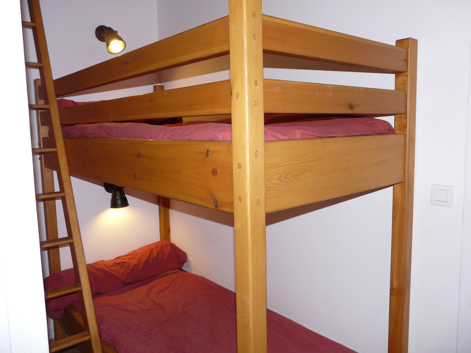 Comprenant : hall d'entrée, cuisine équipée ouverte sur salon-séjour donnant sur une terrasse/jardinet, chambre, coin-cabine, mezzanine, emplacement de parking couvert, casier à skis.