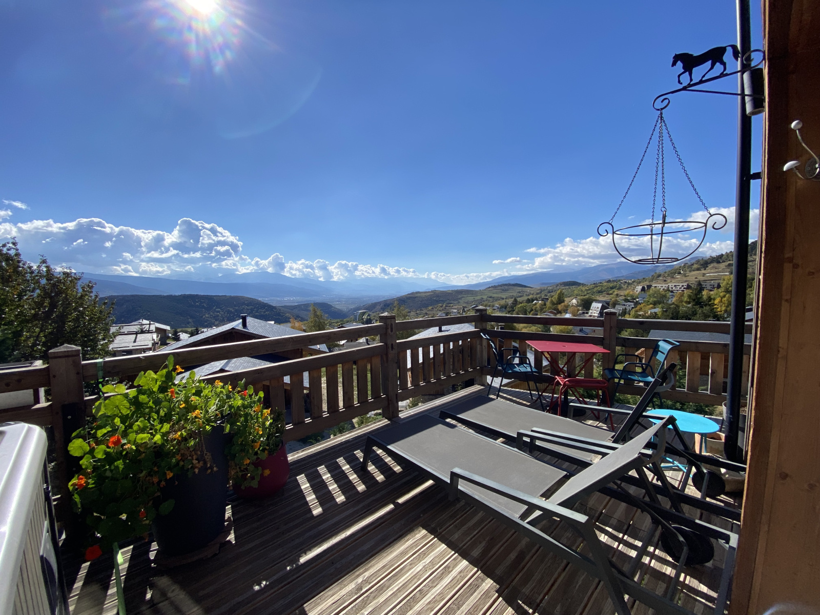 Jacuzzi extérieur, idéal pour se détendre tout en profitant de la vue spectaculaire sur les montagnes,