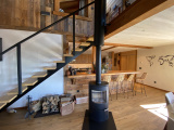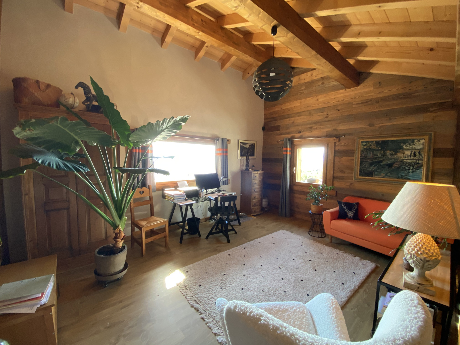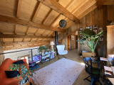 A l'étage : grande mezzanine pouvant faire un deuxième salon et coin bureau, 2 chambres, salle d'eau + wc.