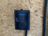 Prises électriques de recharge dans le garage, pour une voiture électrique.