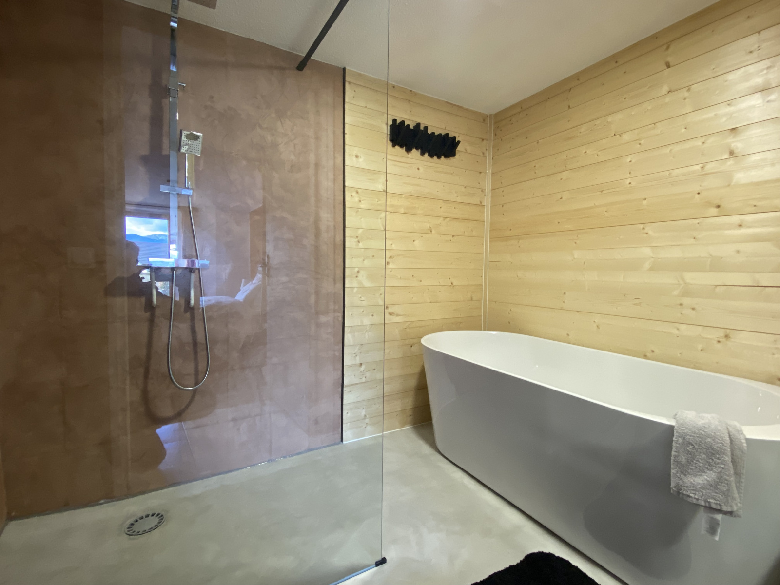 Dès l’entrée, on perçoit immédiatement la qualité du lieu : les matériaux, les volumes, la lumière… tout concourt à créer une atmosphère chaleureuse, typique des constructions montagnardes, tout en offrant un niveau de confort moderne.