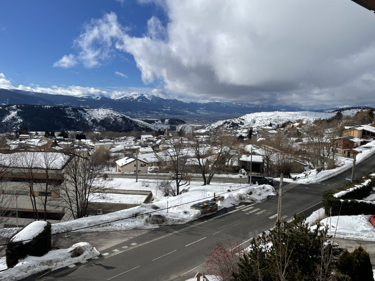 La pièce de vie, chaleureuse et lumineuse, est sublimée par une cheminée et s’ouvre sur un balcon de 8 m² exposé sud, offrant une superbe vue dégagée sur les montagnes, véritable invitation à la détente en toute saison. Les volets en bois renforcent le caractère de l’appartement.