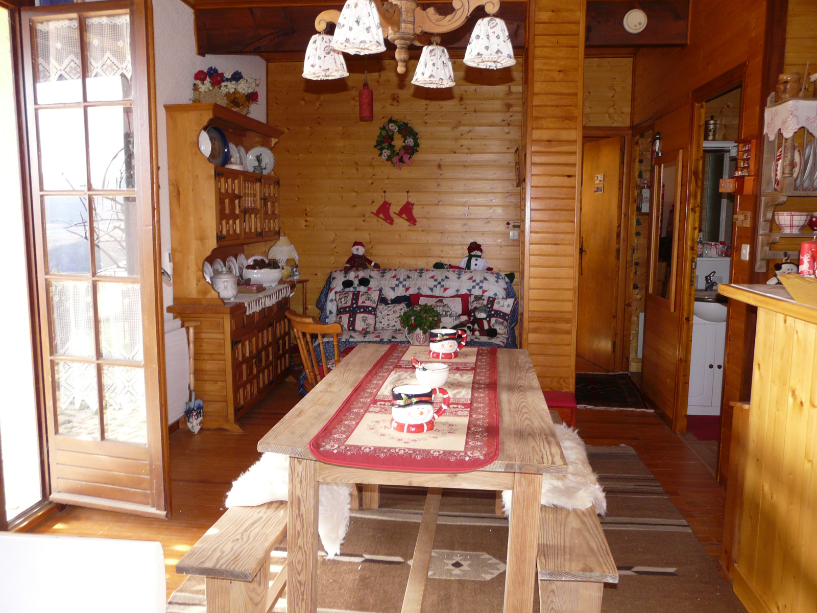 Agencement : Cuisine indépendante, salle à manger donnant sur la terrasse, grand salon avec vue montagne, 3 chambres à l’étage, salle de bains et WC.