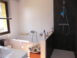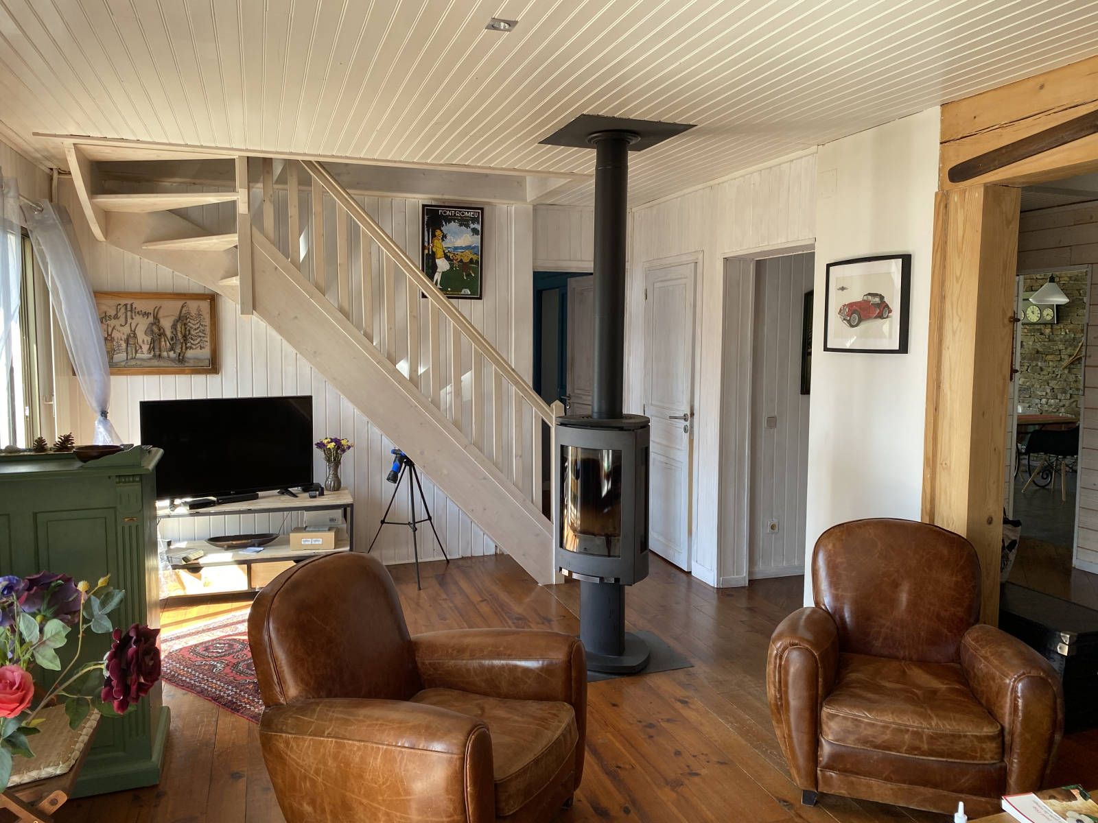 Il comprenait : une entrée, un spacieux salon avec poêle donnant sur un balcon exposé sud, une cuisine ouverte sur salle à manger avec accès terrasse et jardin, une chambre parentale avec salle de bains, placards et dressing indépendant, WC séparés, buanderie et une chambre en mezzanine.