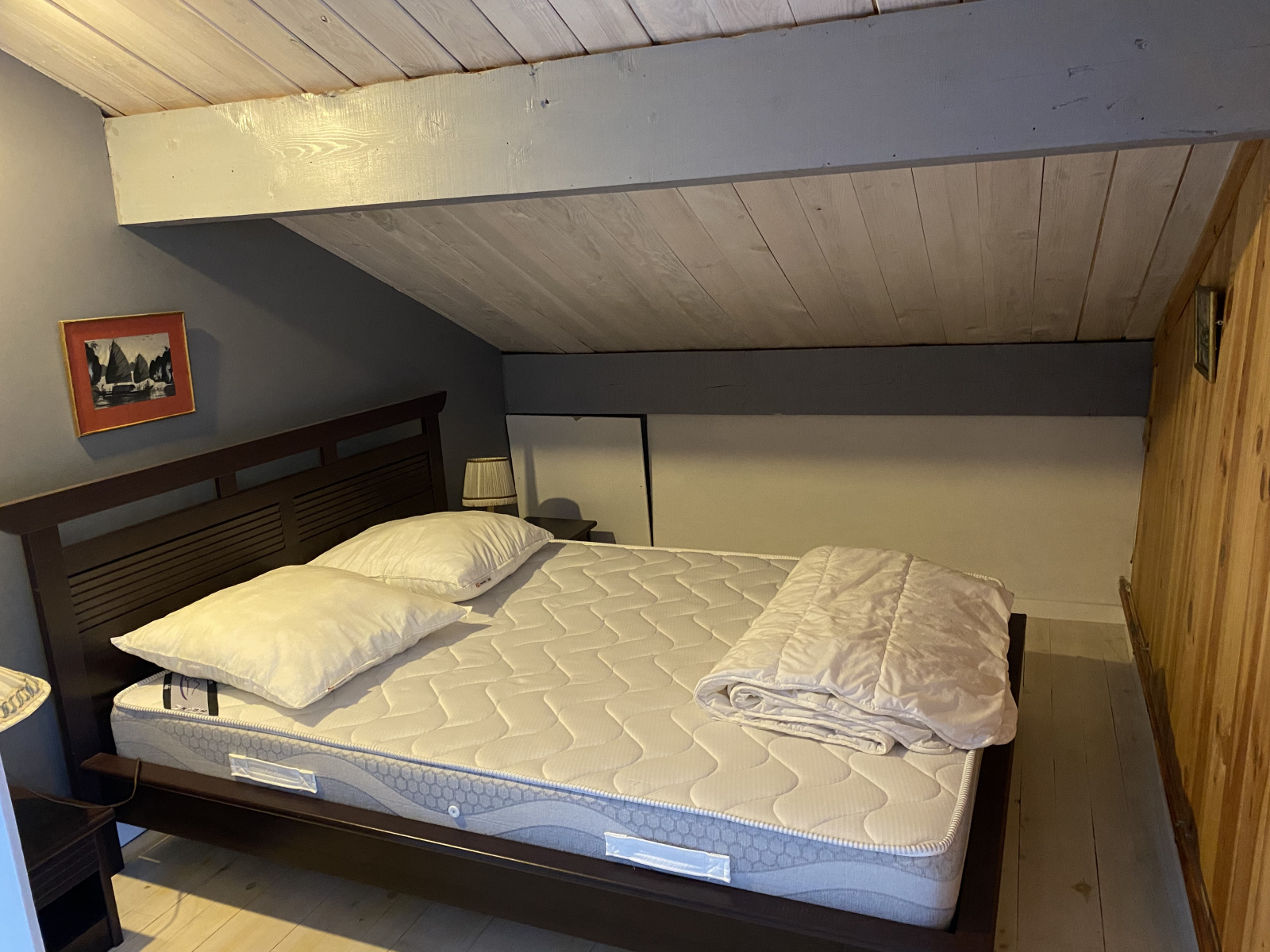 À l’étage : une chambre enfants en mezzanine, une chambre avec salle d’eau.