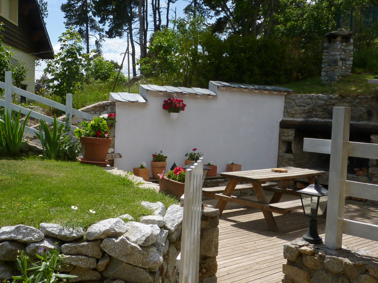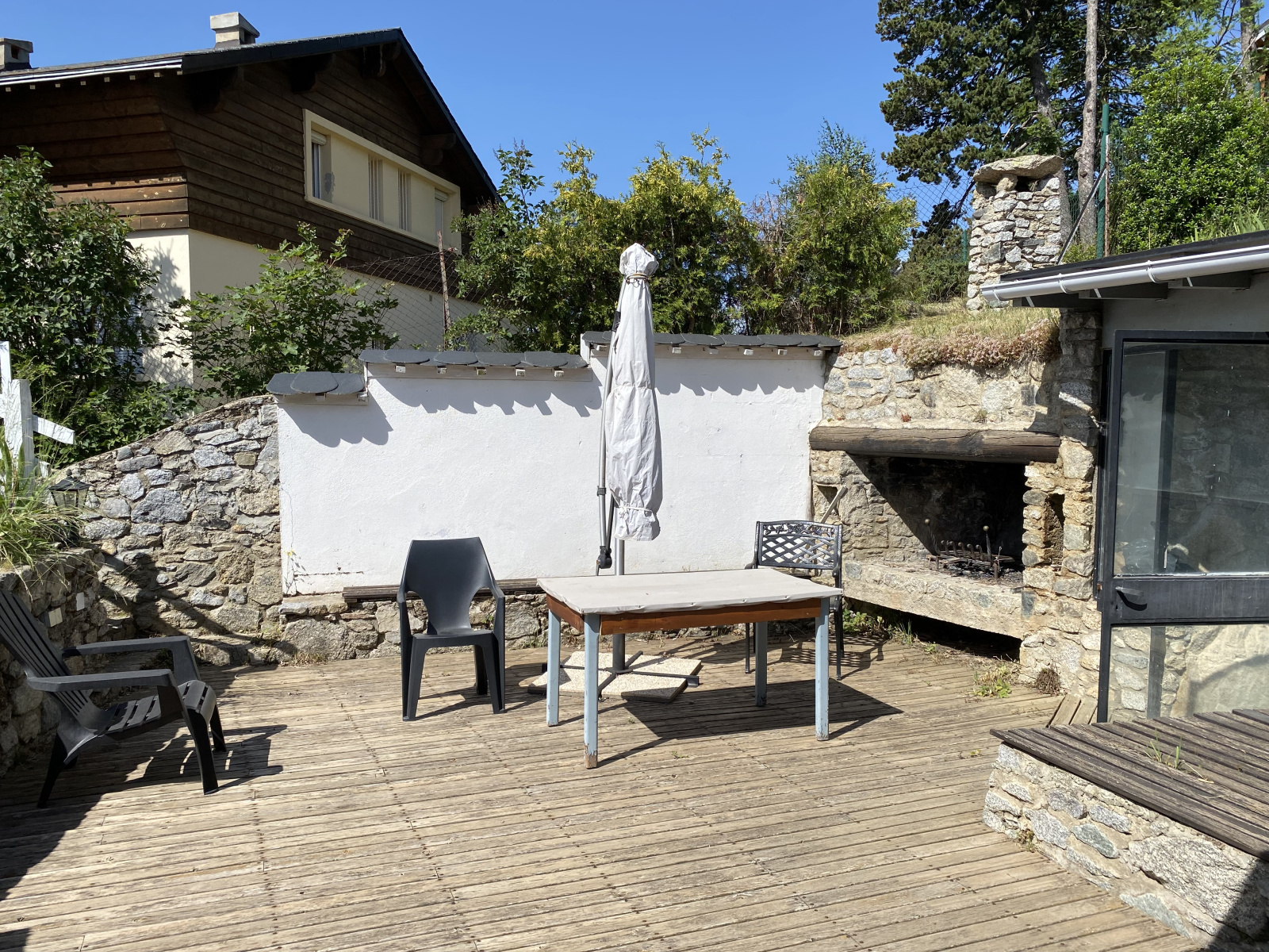 Terrasse exposée plein sud, belle vue sur les montagnes, situation idéale aussi bien pour une résidence principale que secondaire (avec rendement locatif), toiture récente, chauffage au fuel et poêle à bois, nombreuses dépendances, vendu meublé.