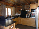 Rez-de-chaussée : Entrée avec double sas, cuisine américaine entièrement équipée, salle à manger ouverte sur une grande terrasse, double salon avec poêle à bois, pièce de 30 m² pour rangements, local à vélos et skis.