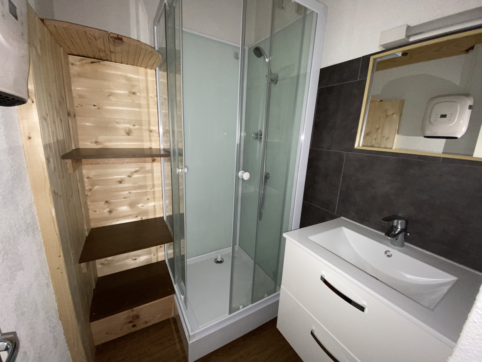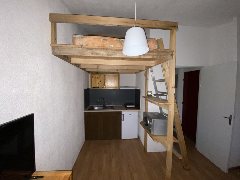 Comprenant : entrée, kitchenette équipée ouverte sur une belle pièce à vivre avec une hauteur sous plafond, coin couchage en mezzanine, salle d"eau, wc indépendant, casier à skis, parking extérieur copropriété.