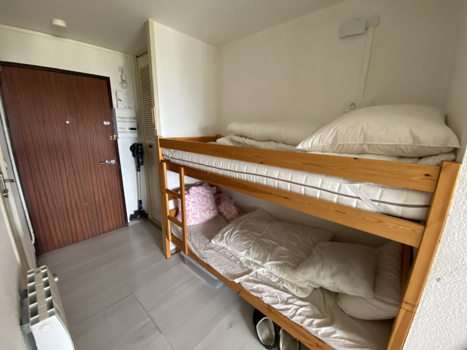 Dans la résidence les 4 saisons Ce studio-cabine de 23,78 m² (25 m² avec placards) à Font-Romeu a été vendu rapidement grâce à son état impeccable et ses équipements récents.