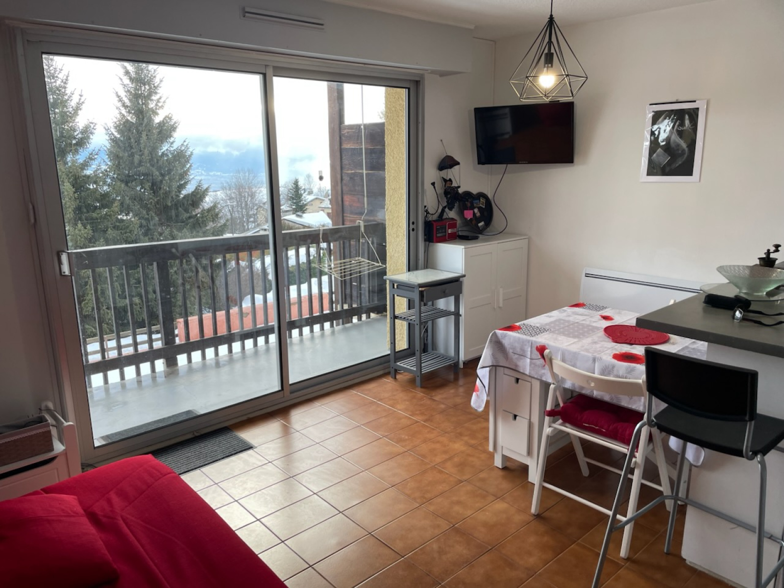 Comprenant : entrée, cuisine équipée ouverte sur salon-séjour offrant accès balcon, coin-cabine, salle de bains + wc, casier à skis, cave, emplacement parking intérieur privatif, parking exterieur copropriété.