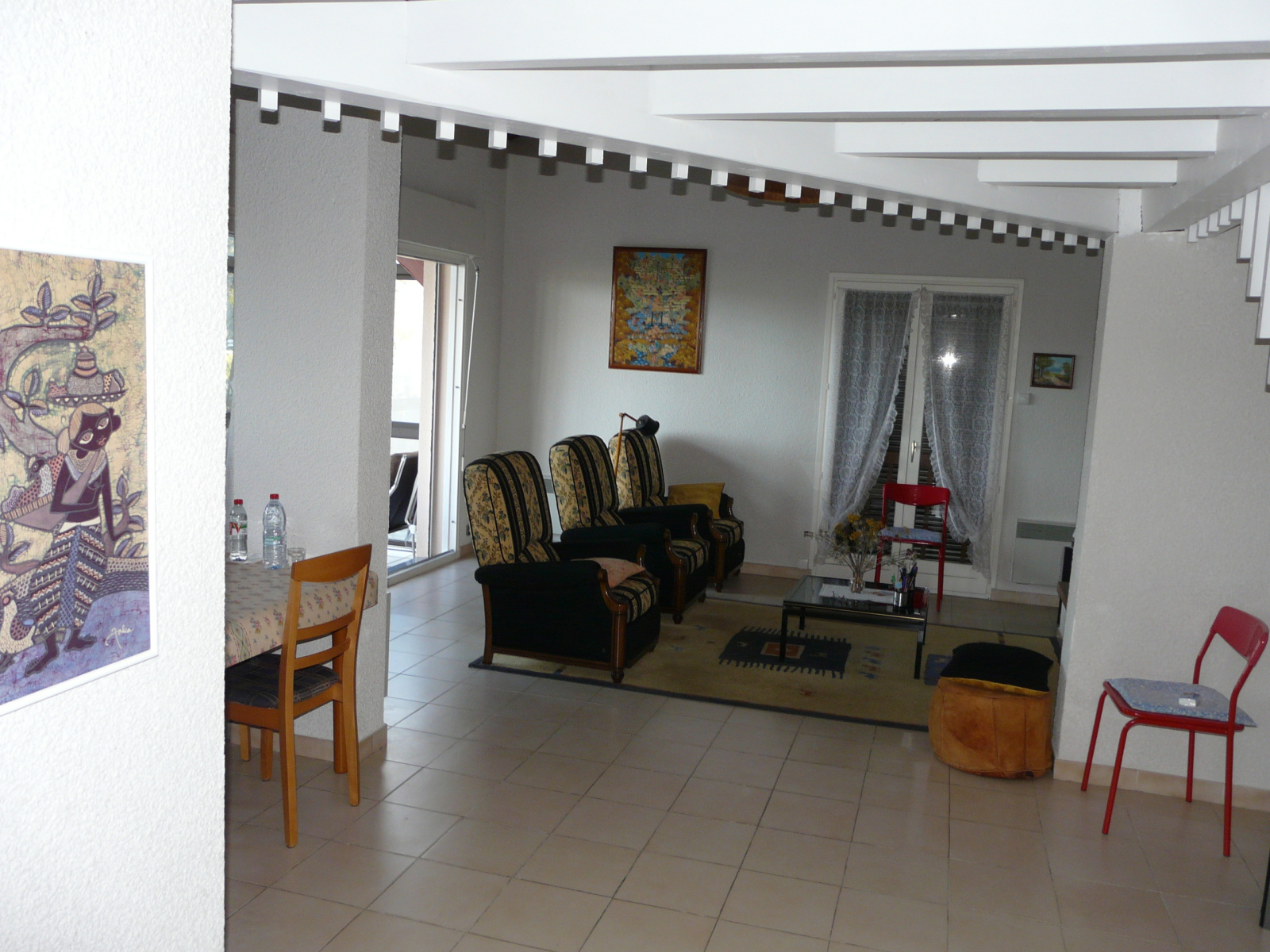 Au niveau principal : entrée, grand salon-séjour avec cheminée donnant sur une véranda, cuisine ouverte, arrière-cuisine (ou buanderie), WC indépendant.
