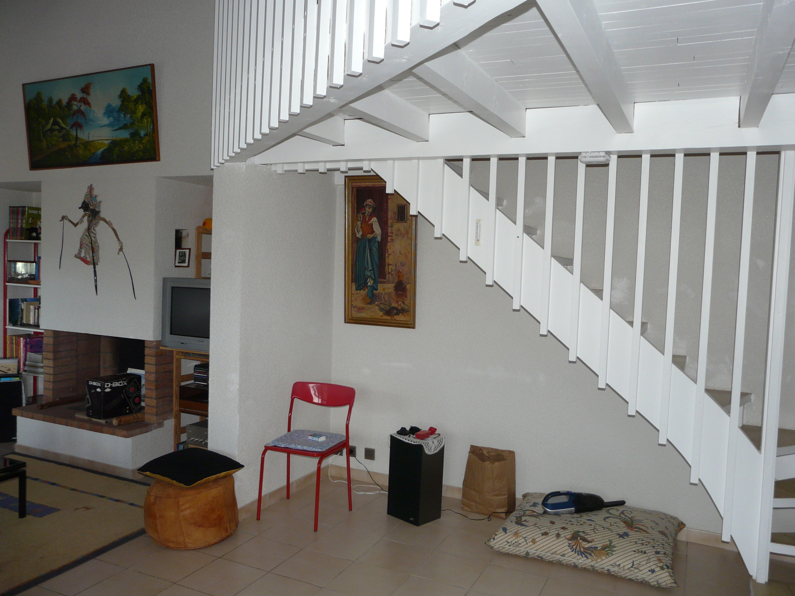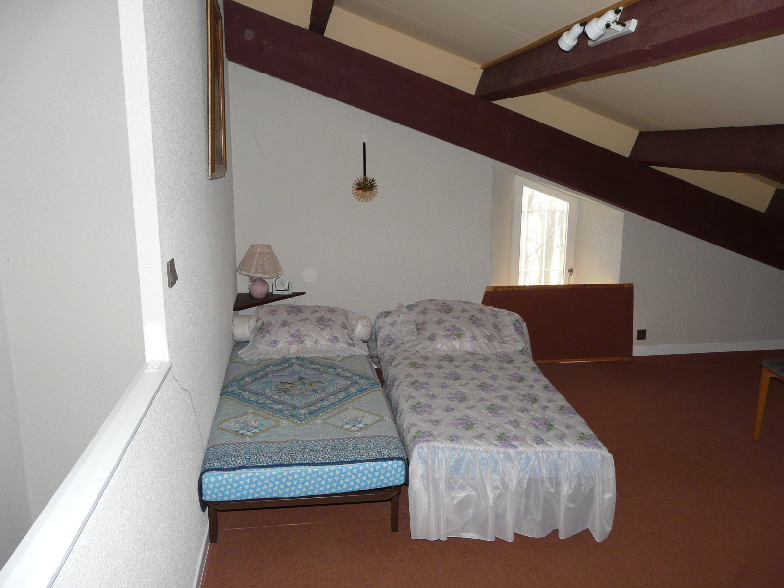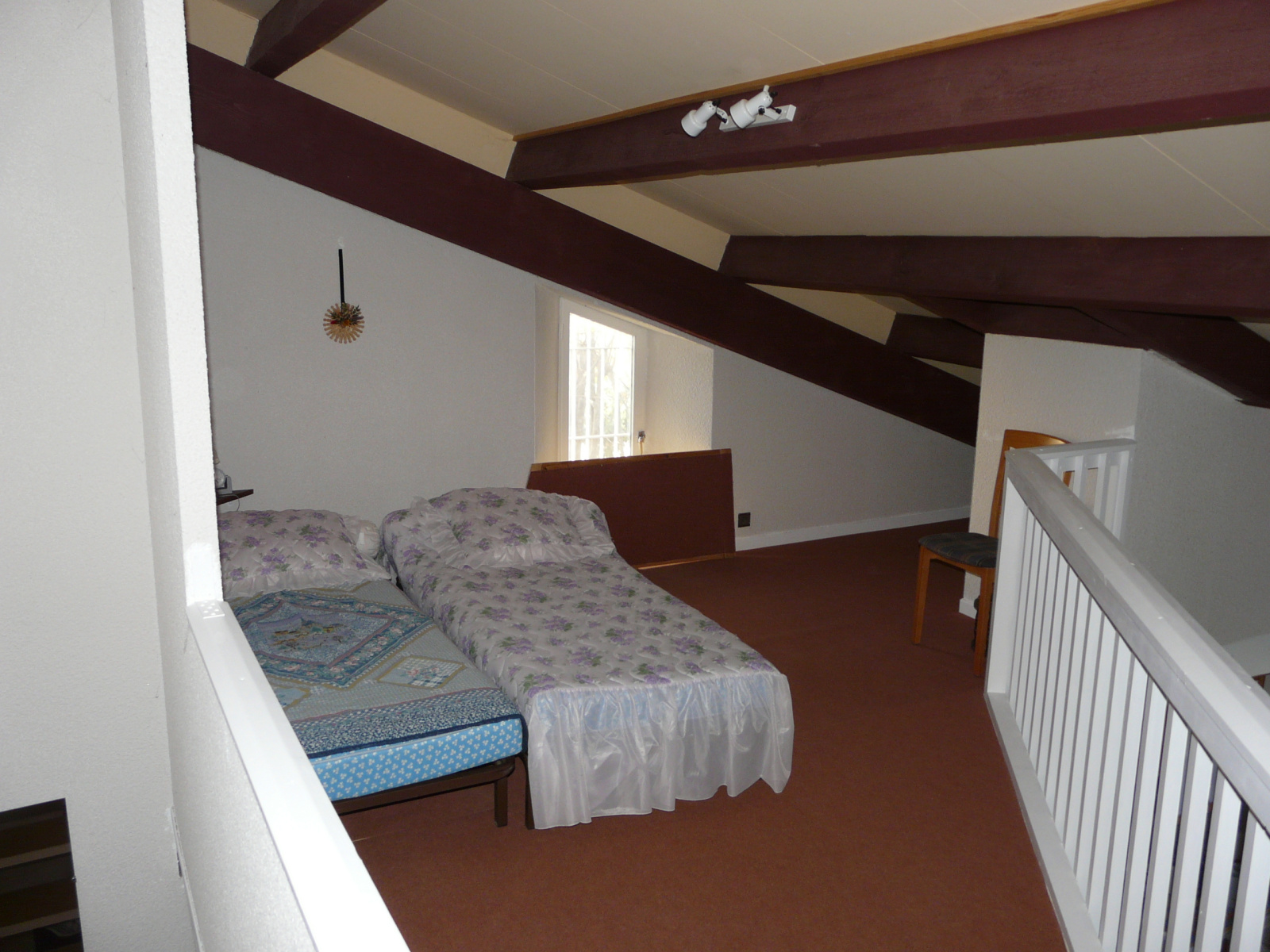 À l'étage : 2 chambres avec placards, une chambre en mezzanine, salle d'eau.