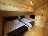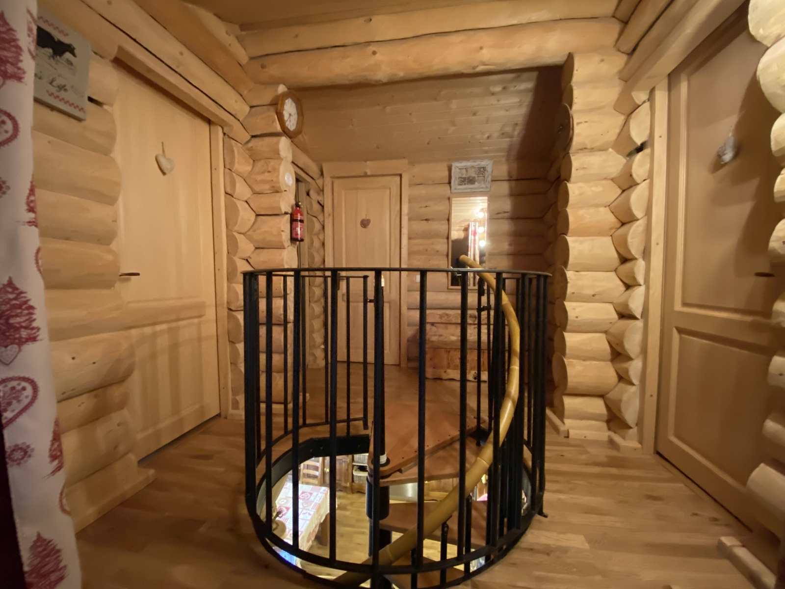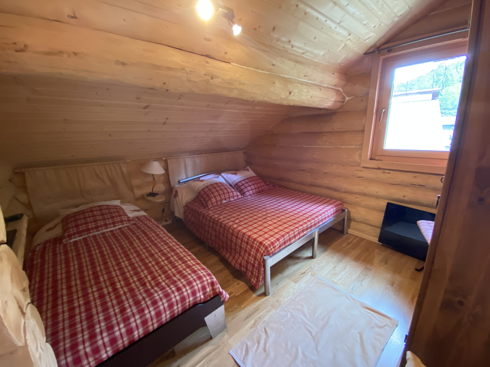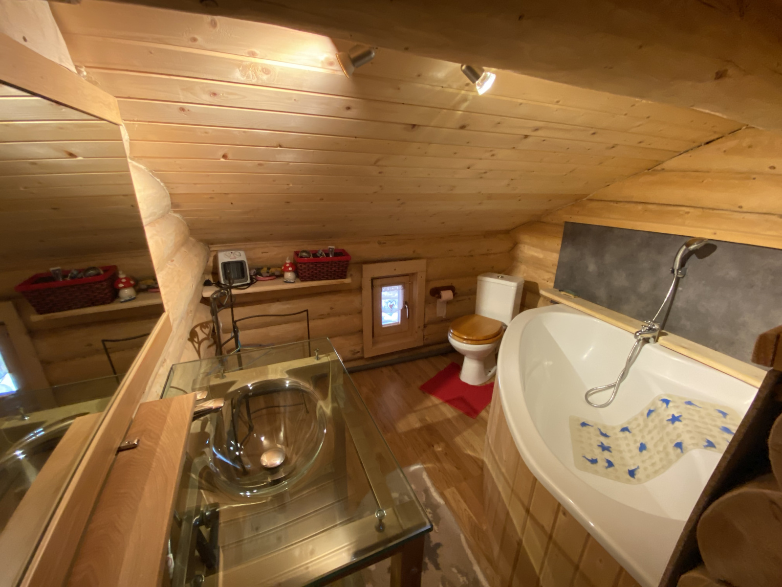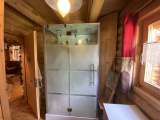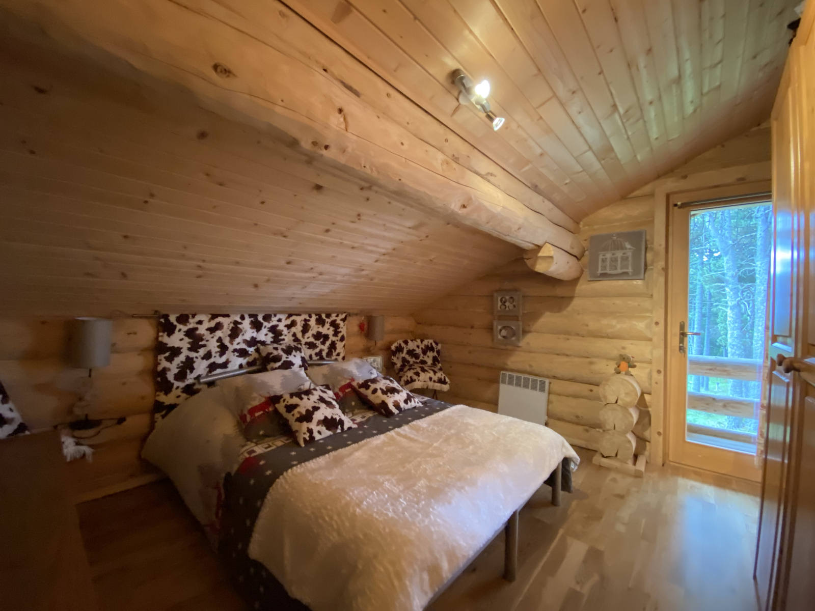Comprenant : Rez-de-chaussée : hall d'entrée, cuisine équipée ouverte sur salle à manger, salon avec poêle à granulés offrant un accès sur une belle terrasse et jardin, salle d'eau + sauna, buanderie + wc, cellier commun avec le chalet voisin, parking extérieur devant chalet.