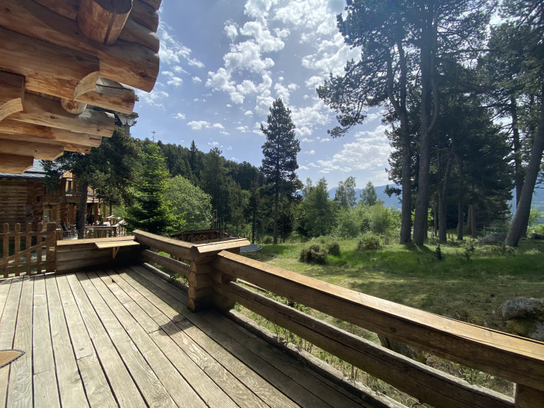 Exposé sud-est avec terrasse + balcon offrant une vue sur la forêt et le Col Mitja.