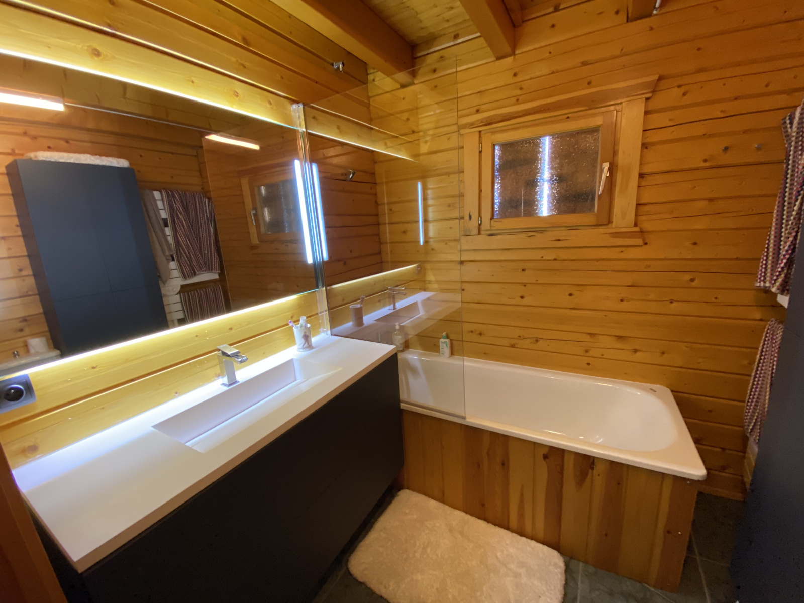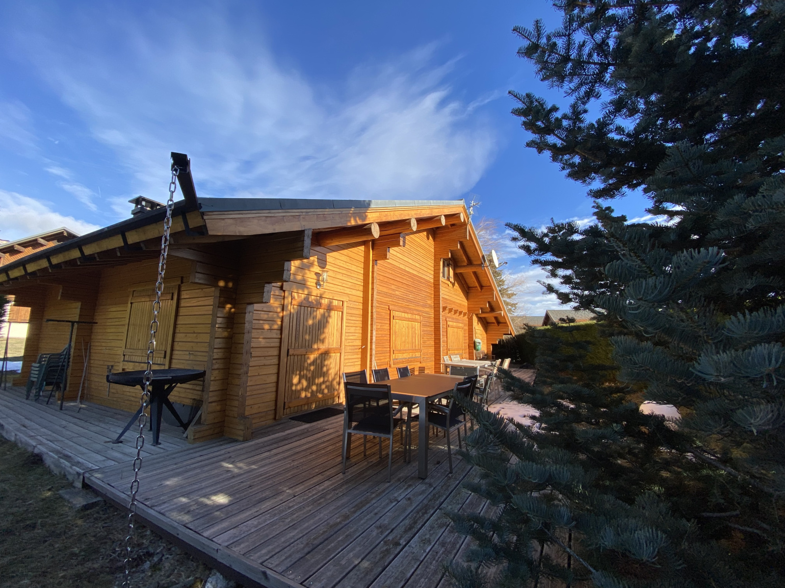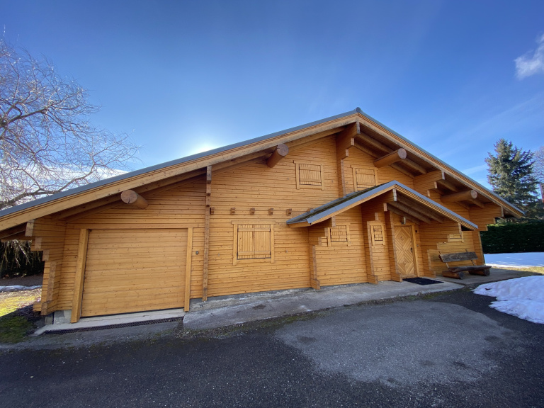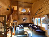 Magnifique chalet de montagne en madriers 4 faces d'une superficie de 148 m² en parfait état, composé de 6 pièces, implanté sur une parcelle plate et clôturée de 1476 m².
