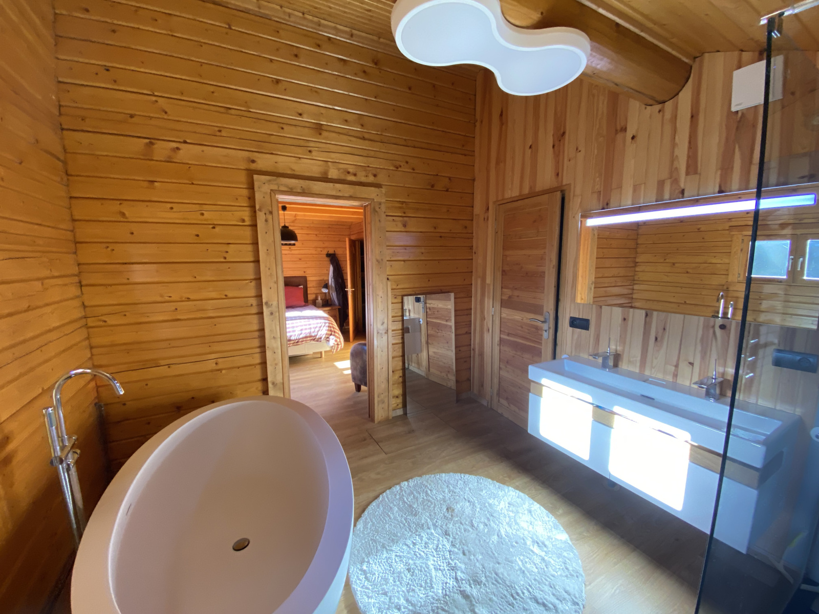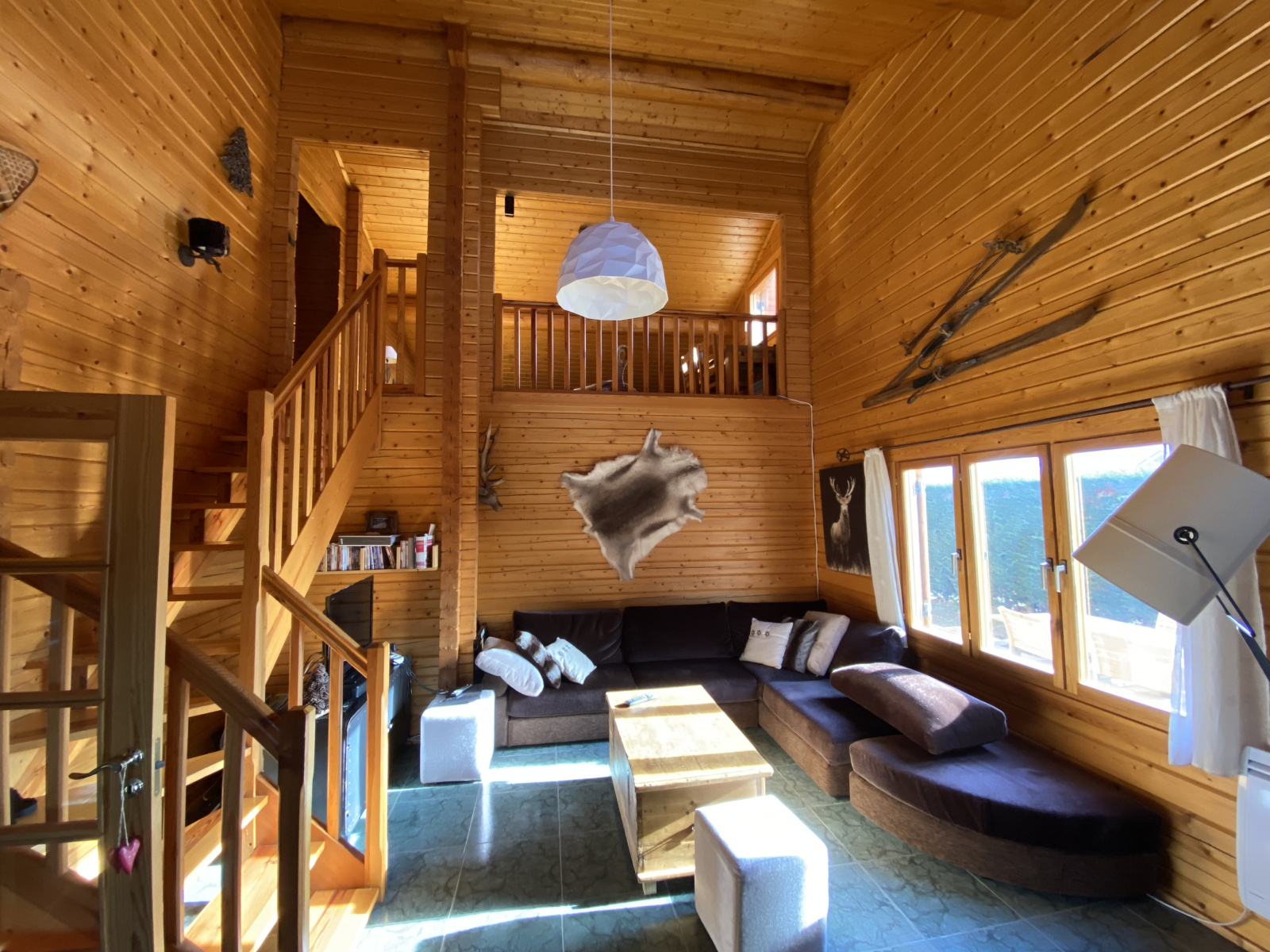 A l'étage : mezzanine ouverte pouvant faire office d'un second salon ou couchages ou espace de loisirs, 2 chambres.