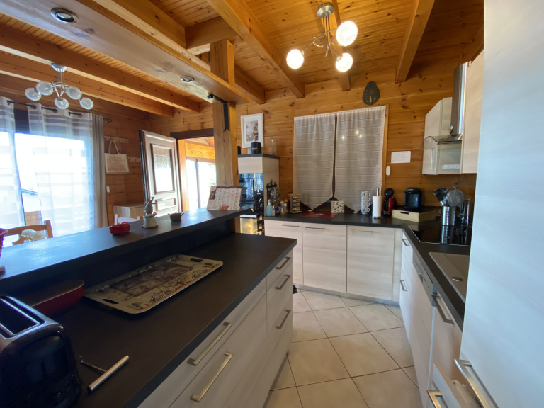 Sur les hauteurs de Superbolquère, dans un quartier résidentiel très beau chalet 4 faces en bois massif de bon standing et en parfait état d'une superficie de 130 m² habitable + 12 m² de véranda, implanté sur une parcelle clôturée et arborée de 805 m².