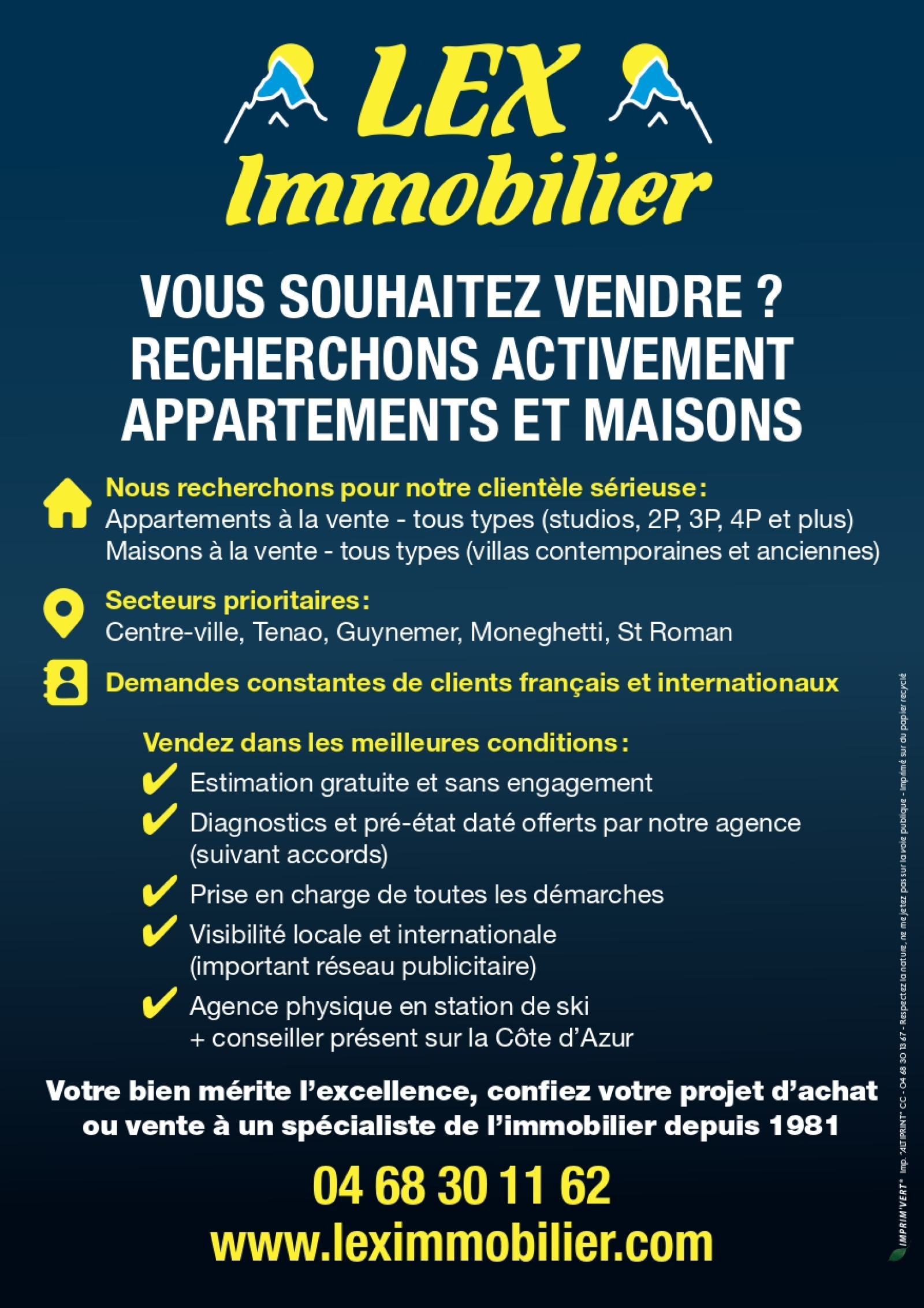 Notre agence immobilière, spécialisée dans le secteur frontalier avec Monaco, recherche activement des studios, appartements 2 pièces et 3 pièces à vendre pour répondre à une forte demande d’acquéreurs, notamment d’investisseurs et de personnes travaillant en Principauté.
