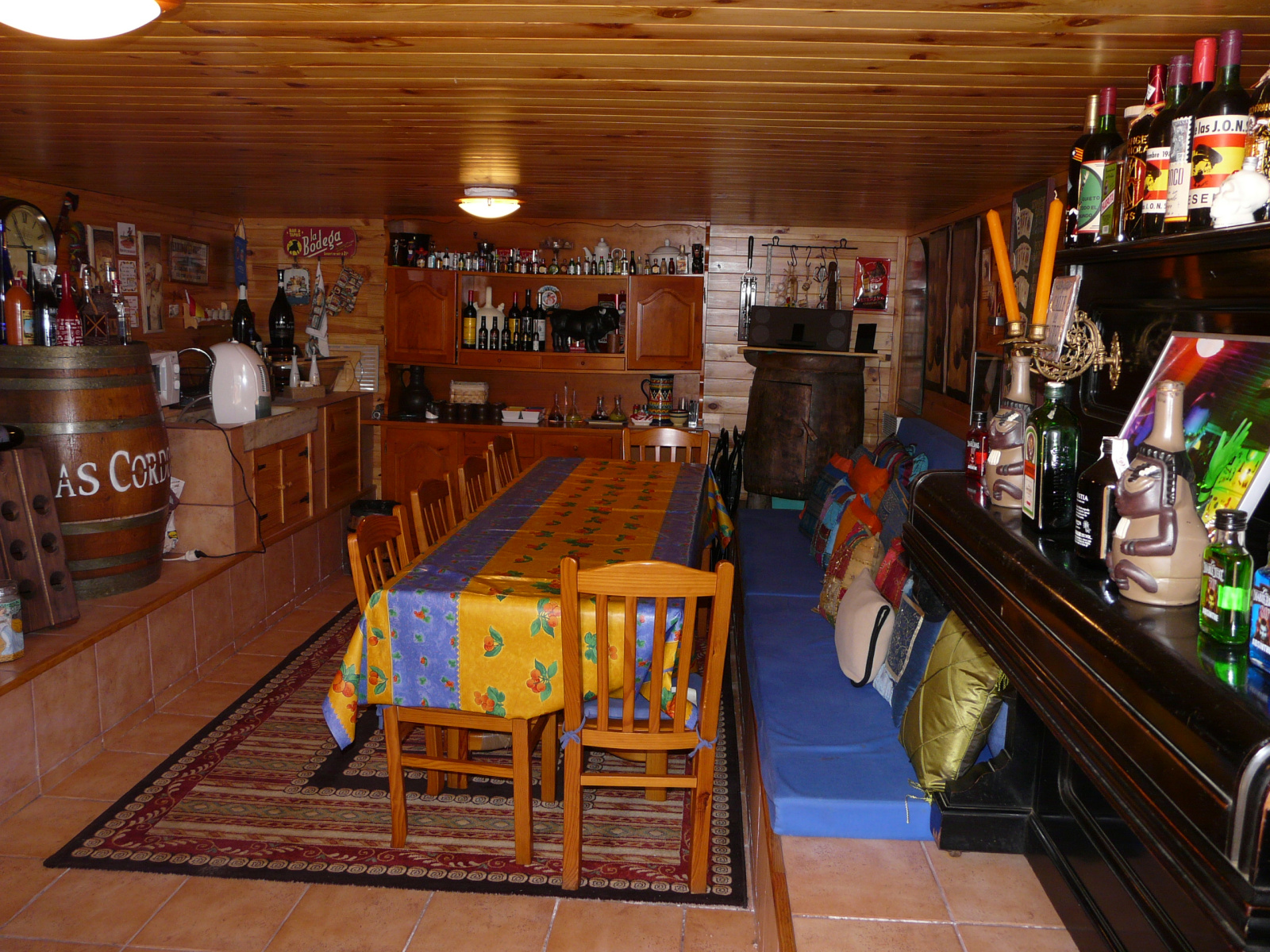 Pièces annexes : Salle d'eau + WC, buanderie, cave pour le bois, cave à vins (pièce de dégustation), barbecue