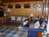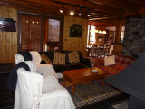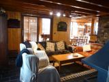 L'intérieur du chalet comprend un espace de vie spacieux et lumineux avec une cheminée, un double salon, ainsi qu’une véranda (salon d'hiver) qui permet de profiter de la vue tout au long de l'année. Il a été conçu pour maximiser la lumière naturelle et le confort.