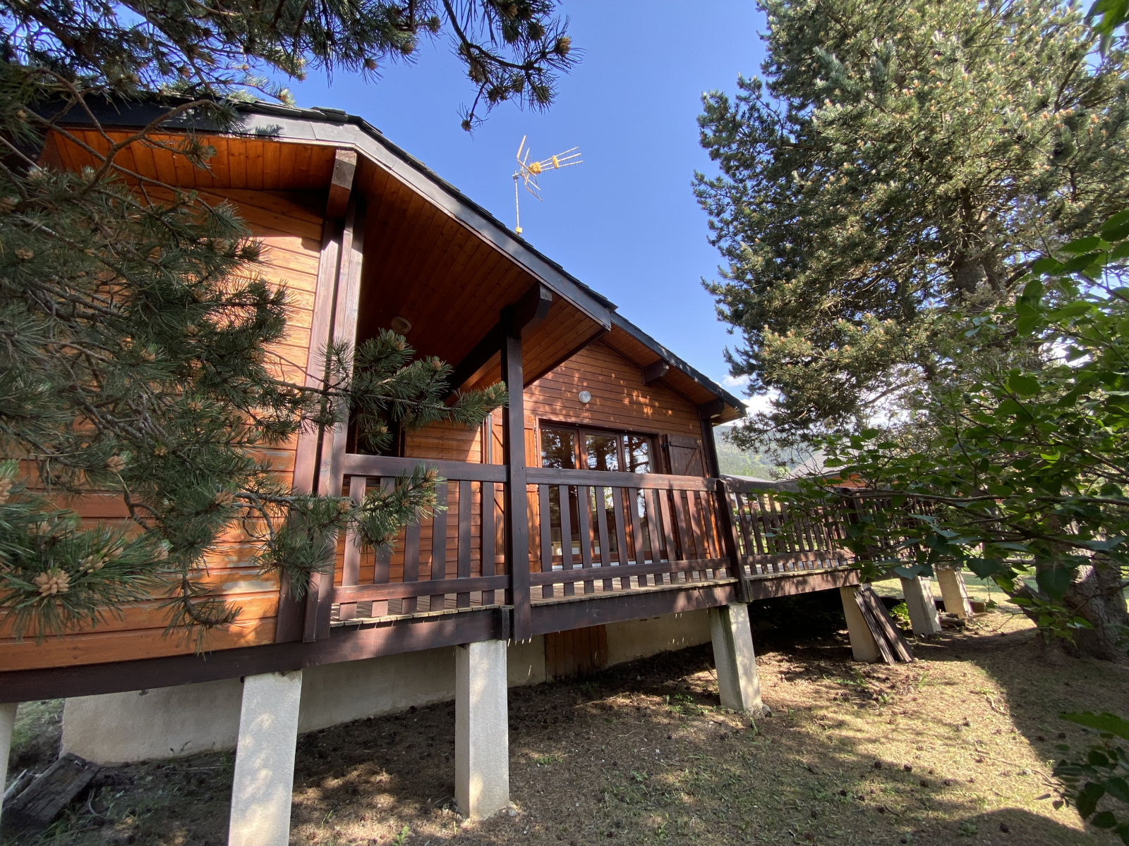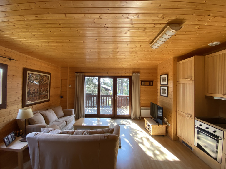 Implanté sur une parcelle plate de 300 m², le chalet offrait un potentiel d'aménagement, notamment pour la création d'un garage. Son exposition sud-ouest permettait de profiter d'une belle terrasse avec vue dégagée sur les pistes et un environnement arboré.